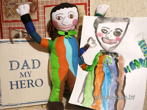 В нашей семье дочки нарисовали папин портрет, а чудесная мастерица Евгения подготовила настоящий сюрприз - сшила по нашему рисунку нашего же папу.