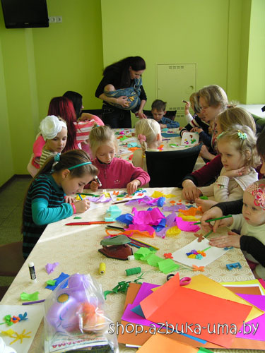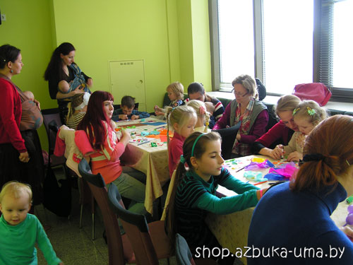 Людей пришло много! Больше, чем я ожидала, что меня впечатлило очень. Все сидели, клеили, вырезали, рвали, комкали... И детки, и мамы...