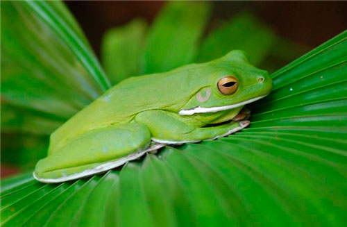 Тигра лег, прикрыл глаза, а Певучая лягушка стала петь ему колыбельную. А вскоре ее голос подхватили и другие Лягушки пруда.