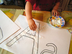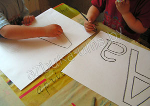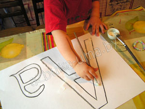 Просим малыша ее обвести, чтобы почувствовать. Для маленькой Софи, я обводила букву сама.