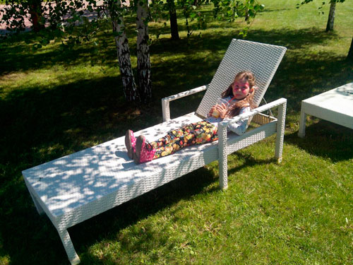 Поляну перед кафе оснастили лежаками. София обожает там валяться...