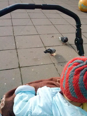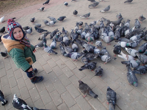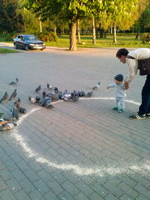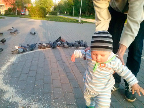 Раньше, когда Эмиль был поменьше, мы тоже любили покормить голубей.