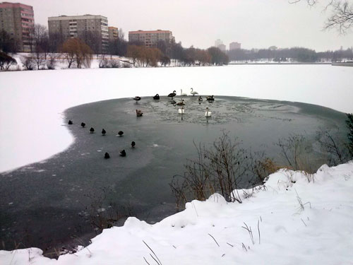 Хотела сфотографировать их в полете, так немного припугнула. Многие начали взлетать, а некоторые как сидели так и не испугались.