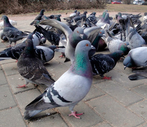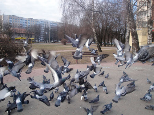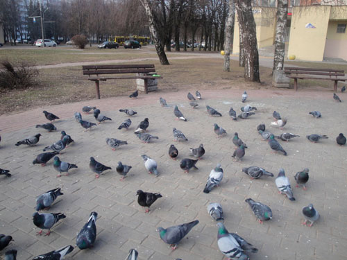 В районе, где мы живем, голубей очень много, особенно в одном месте, там их подкармливают, вот они и прижились. Туда-то мы и направились понаблюдать.