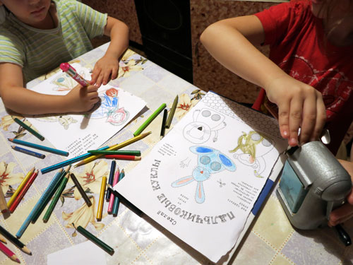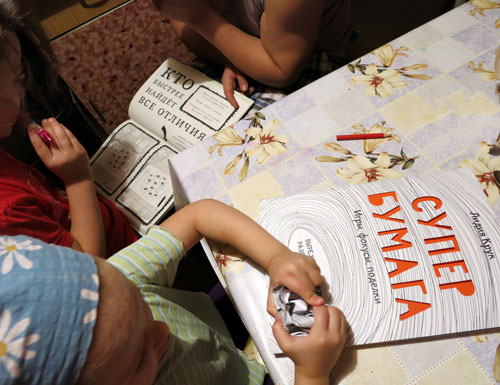 Еще мы берем эту книгу в очереди и в кафе, чтобы занять детей, когда ждем заказ.