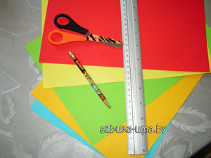 Расчертите цветную бумагу с помощью карандаша и линейки на квадратики. Оптимальный размер стороны – 3 – 4 см.