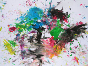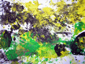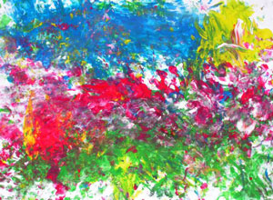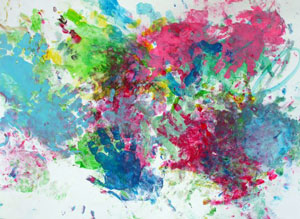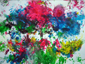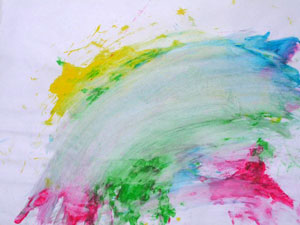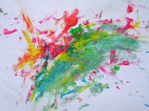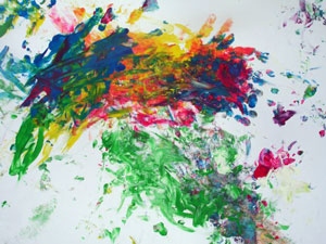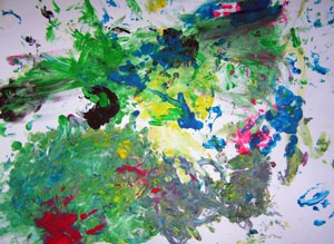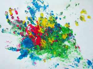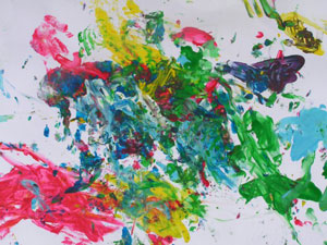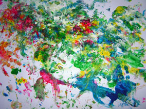 Кстати, мы рисовали с дочкой в 1,5 года так: я накладывала на бумагу горочку пальчиковых красок ложкой, а дочка их художественно размазывала.