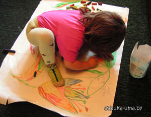 Старшая сама придумывает сюжет, а для маленькой, я рисовала контуры, а она их разукрашивала. Получилась такая огромная раскраска своими руками.