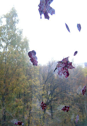 И мы украсили этими листьями окно. Клеили с помощью мыла. Сейчас за окном зима, а у нас на окне - золотая осень.