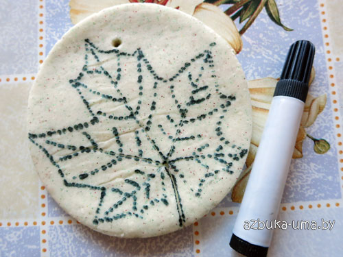 Шилом проделали в тесте дырочку, чтобы потом подвесить медальон.