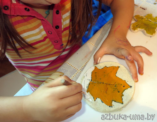 С такими мыслями мы собрали с девочками несколько красивых кленовых листьев и принесли их домой, чтобы оставить осениие "воспоминания" у нас дома до следующей осени. Мы решили сделать медальоны.