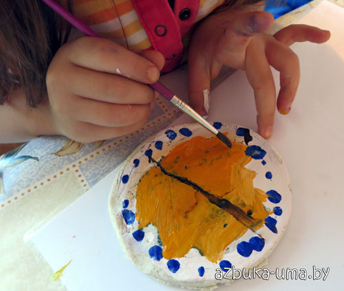 Контуры листа и прожилки прорисовываем фломастером. Детям было удобнее рисовать контуры, когда лист еще находился на тесте, они его обрисовывали.