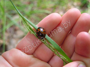 Мы обнаружили, что бывают разнообразные божьи коровки. Это, например, оранжевая с большим количеством точек.