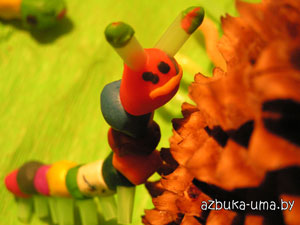 Катюшина авторская гусеница. Дочка сама придумала нарезать соломинку и сделать ей ноги и усики.