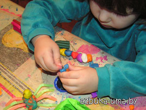 Мы с девочками выбрали раздел "лепка", вместе посмотрели простые идеи лепки насекомых, я выделила детям пластилин (Интернет-магазин "Азбука Ума") и соломинки для питья, и с чистой совестью отправилась готовить завтрак.