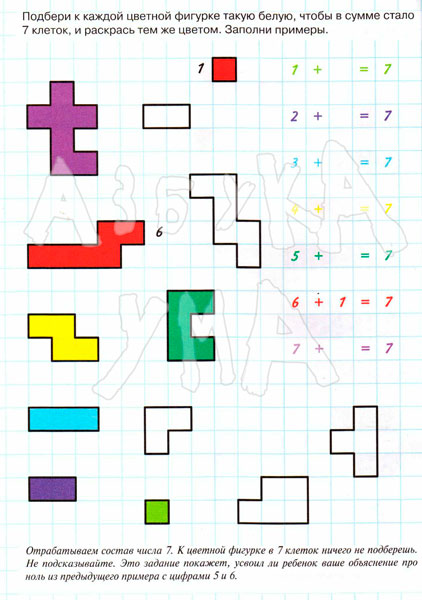 В этой книге нужно поиграть с клеточками, посчитать количество, сравнить, рассмотреть возможность разных вариантов решения и т.д. На форзаце даны указания родителям о том, как работать с этой книгой. Формат А4, тонкая - 18 листов, но полезная. Обложка из картона, страницы цветные.