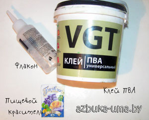 Мы смешали во флаконе клей ПВА и пищевой краситель.