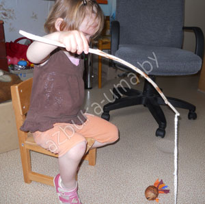 Очередной дождливый день не позволил пойти на прогулку, но мы с моей дочерью не расстроились, всегда найдется увлекательное и интересное занятие дома. Так было и в этот раз, я занималась делами в одной комнате, моя дочурка прибегала ко мне и рассказывала чем она занимается в другой, но вот что-то мой ребенок притих, и ни слуху от него, ни духу. Крайне заинтересованная я уже была на подходе, как моя крошка выбежала с радостным криком: «Мама, я рыбу поймала!»
