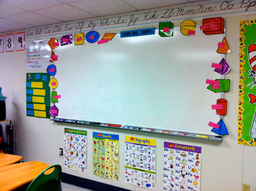 Не секрет, что окружение малыша порождает его интерес. Давайте подготовимся к активным занятиям, украсив комнату наглядными пособиями с геометрическими фигурами: плакатами и риcунками. Развесьте их по квартире. Все новое, яркое и красочное привлечет внимание карапуза. Возьмите малыша на руки и вместе подойдите к наглядному пособию, расскажите ему о том, что на нем изображено. Говорите не только про геометрические фигуры, но и про цвета, про настроение, придумайте сказку, рифмовку и т.д.