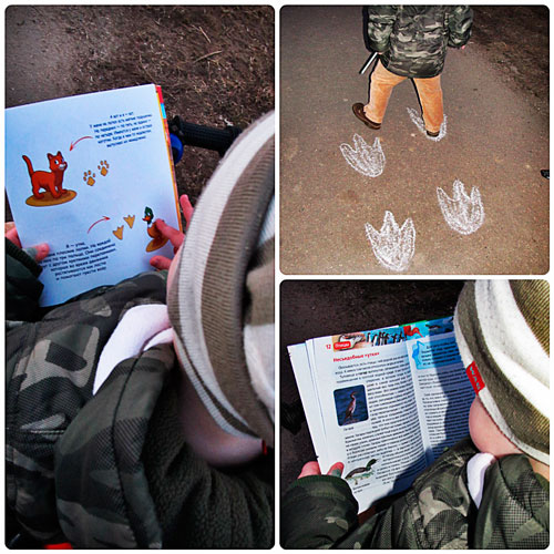 Посмотрели мы в книжках и про необычные лапки у уточек. Мы их нарисовали на асфальте, а потом ходили как уточки.