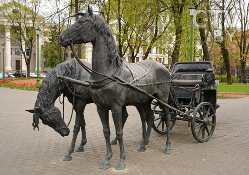 | Фотография Экипажа губернатора г. Минска Корнеева (взята с сайта телекомпании СТВ). Ждали больше получаса, когда скульптура останется в одиночестве. Не удалось... Очередь на фотосемку не заканчивалась |