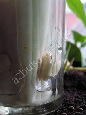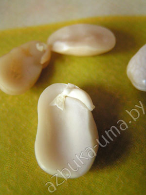 Почему? Потому что семена фасоли высохшие, для того чтобы дольше сохраниться. Так они могут долго лежать, пока не наступят условия для роста. К жизни их пробуждает вода. Семена жадно ее пьют, она наполняет каждое семечко, оно разбухает, а через несколько дней появляется зеленый росток ‑ росток жизни.