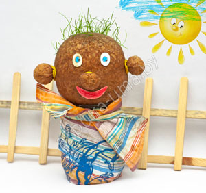 Вариант 2 – «голова» с семенами, которые прорастают в «прическу». Получается очень интересно.