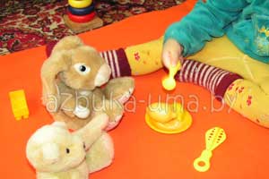 София выбрала наряд для сегодняшнего дня. Папа увидев дочку воскликнул: "Ты настоящий цыпленок!", такая она была ЖЕЛТАЯ. Мы прошлись по квартире, рассмотрели желтые корешки книг, цветочные горшки. А мягкие игрушки были приглашены на обед, который София готовила из ЖЕЛТЫХ лимонов в ЖЕЛТОЙ посуде.