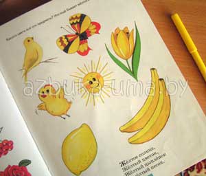 Посмотрели ЖЕЛТУЮ страничку в детской развивающей книге.