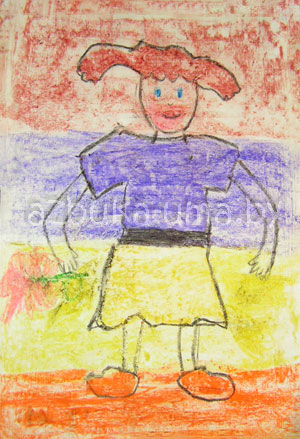 Затем мы рисунок дорисовали и обрисовали. В конце, Катюша добавила девочке в руку цветочек.