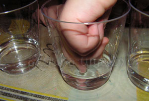 А! Тогда наверное нас выручит ОСЯЗАНИЕ? Опустим чистый пальчик в стаканчики? Нет?