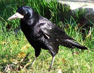 На самом деле, если быть точными, у грача не клюв белеет, а от постоянного трения клюва об землю оголяются от перьев лицевые части. Светлая кожа на этих частях и вокруг основания клюва и дает характерный облик "голого лица" с "белым клювом" старому грачу. У молодых грачей еще нет "белого клюва". Поэтому молодого грача очень сложно с первого взгляда отличить от черной вороны.