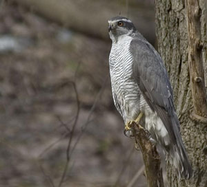 Ястреб-тетеревятник – хищная птица, размерами крупнее вороны, самка этой птицы крупнее самца.